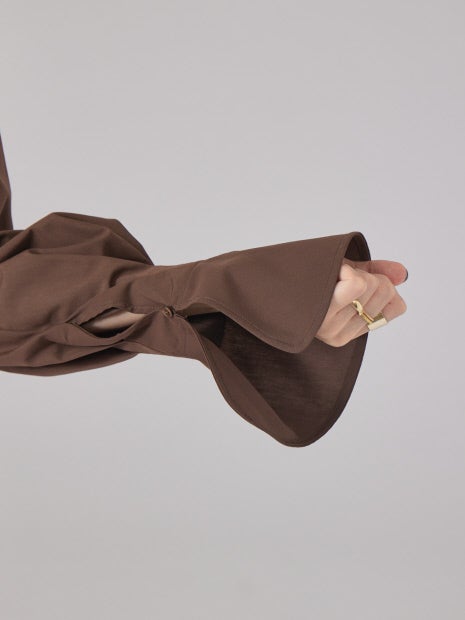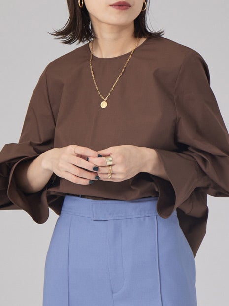 袖口のタック&フレアがポイントで、一枚でも様になるアイテム。