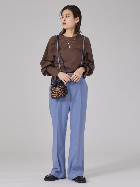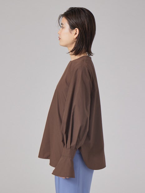身頃はシンプルなクルーネックでシャープに仕上げ、甘めな袖デザインとのバランスをとりました。カラーバリエーションはトレンドのニュアンスカラーで揃えています。