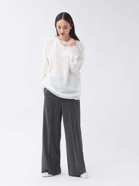 テーパードパンツやワイドパンツなどボトムス選ばずで着ていただける万能アイテムです。