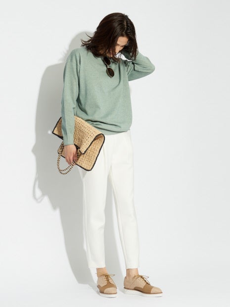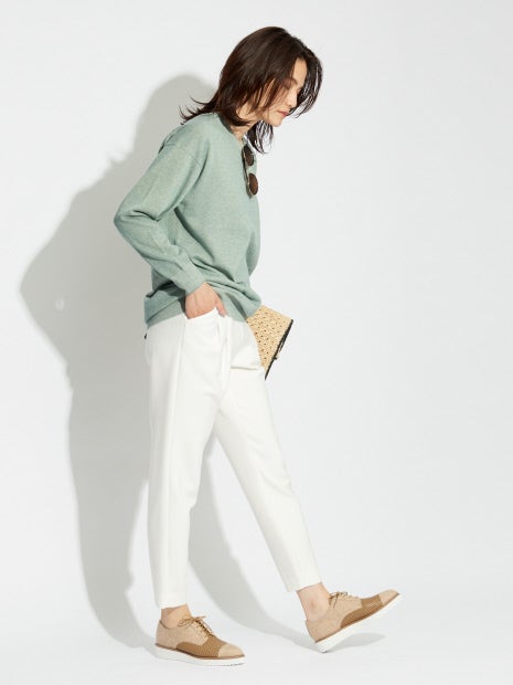 少し厚みのある素材なので、とろみ感のあるシャツブラウスや起毛ニットと合わせると着こなしに表情がつきオススメです。