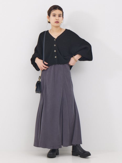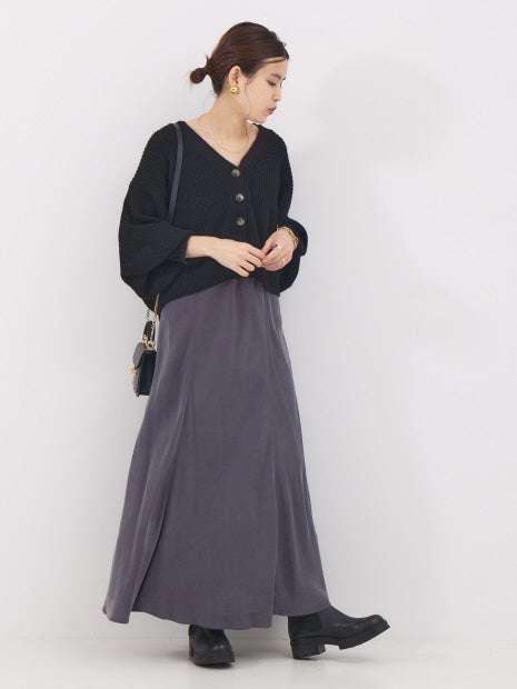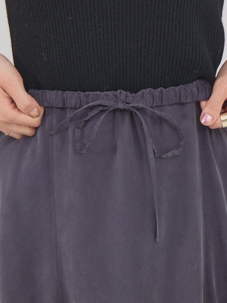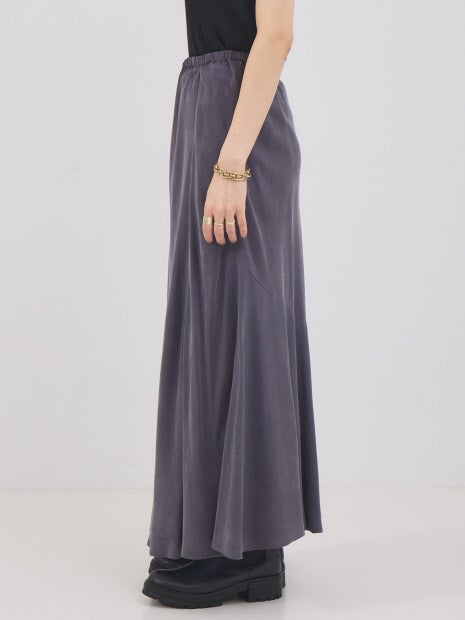 独特な毛羽立ちが特徴のフィブリル加工素材で、こなれた雰囲気が漂うマキシスカート。