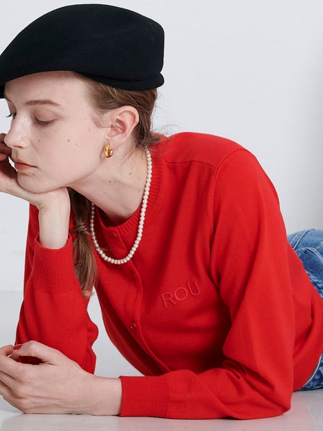 ベーシックなカーディガンの形に、ROUのロゴを刺繍し、