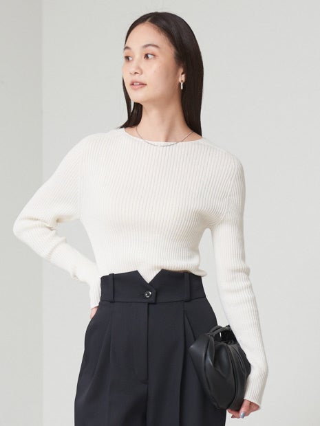 程よくボート気味のネックで開き感があり、抜け感のある印象に。