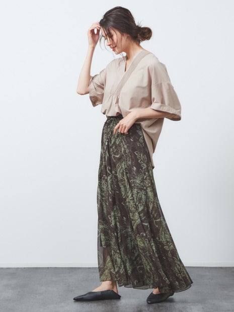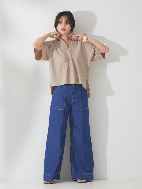 ピンタックやヘンリーネック、フレアシルエットなど、ボヘミアンムード漂う夏らしいカットソー。