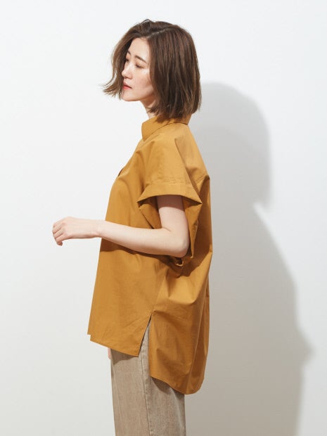 大きなシャツの袖を切ってロールアップしたようなデザインのルーズなシャツです。
