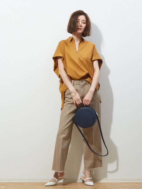 ルーズ過ぎないシルエットのパンツやショートパンツ、タイトスカートとの合わせがおすすめ。
