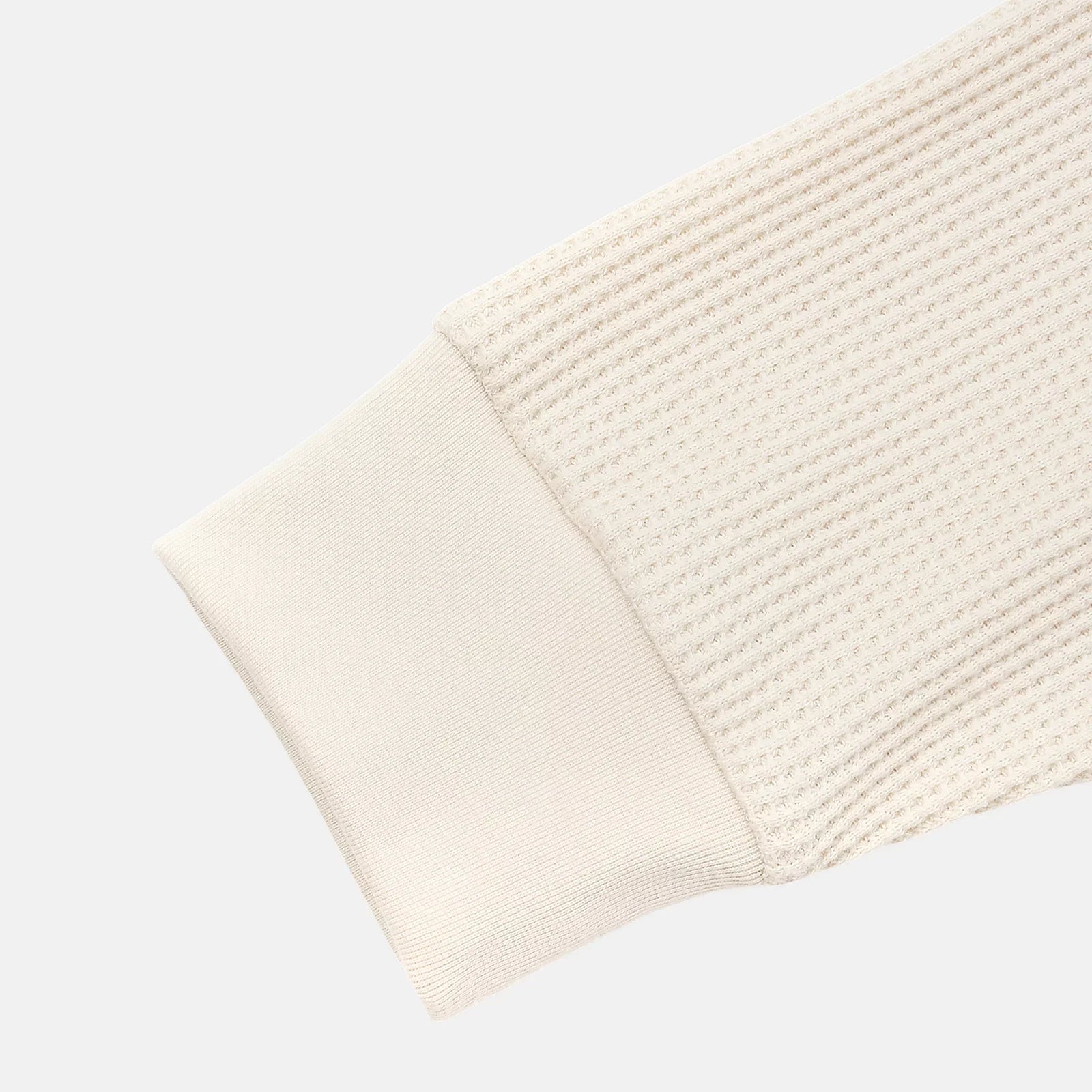 凹凸感のある表情ながら軽量で肌触りのよさが特徴的なワッフル素材のロングスリーブTシャツ。