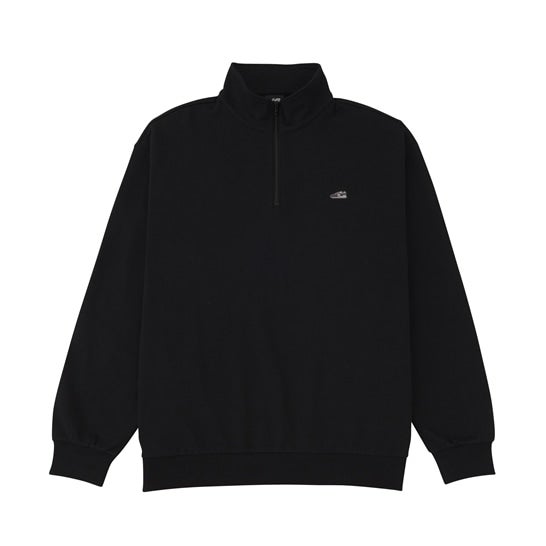 シューパッチがポイントのハーフジップスウェットプルオーバー。