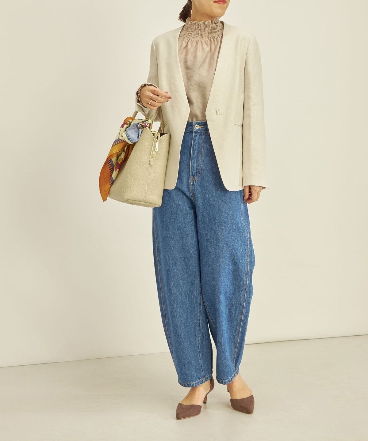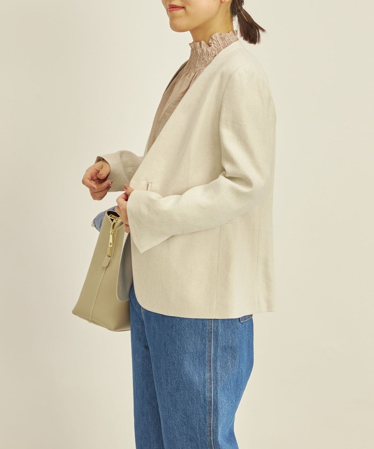 同素材のパンツ(品番:313-11-2898)とセットアップで着用するのがおすすめ。