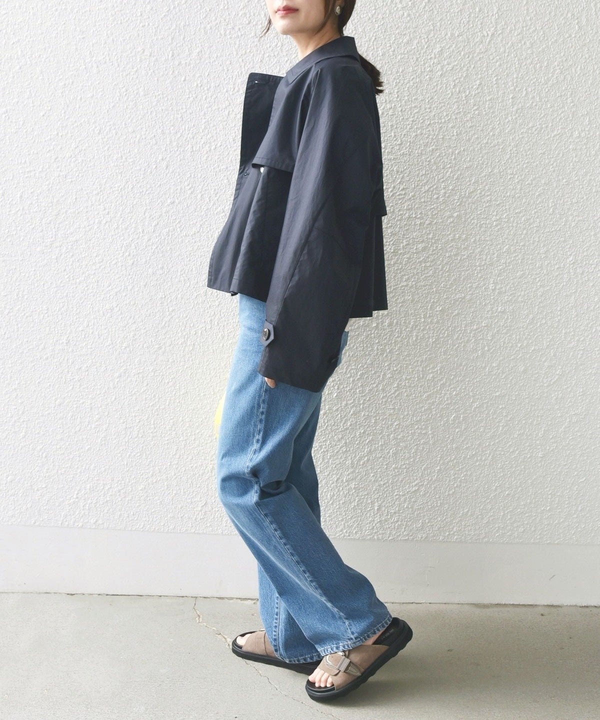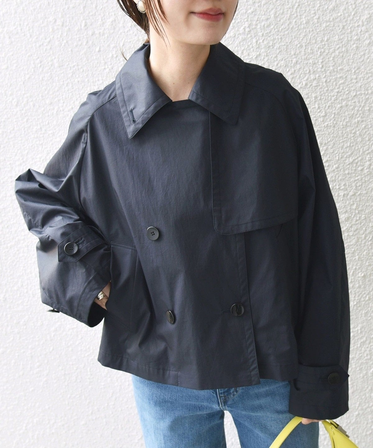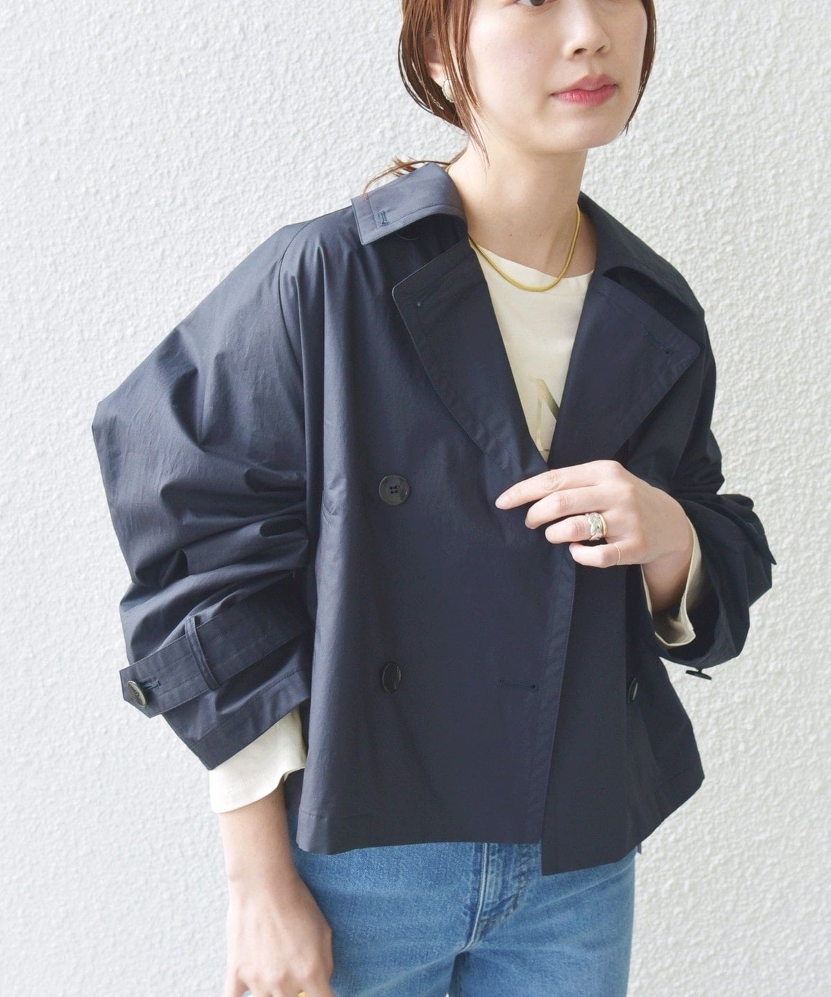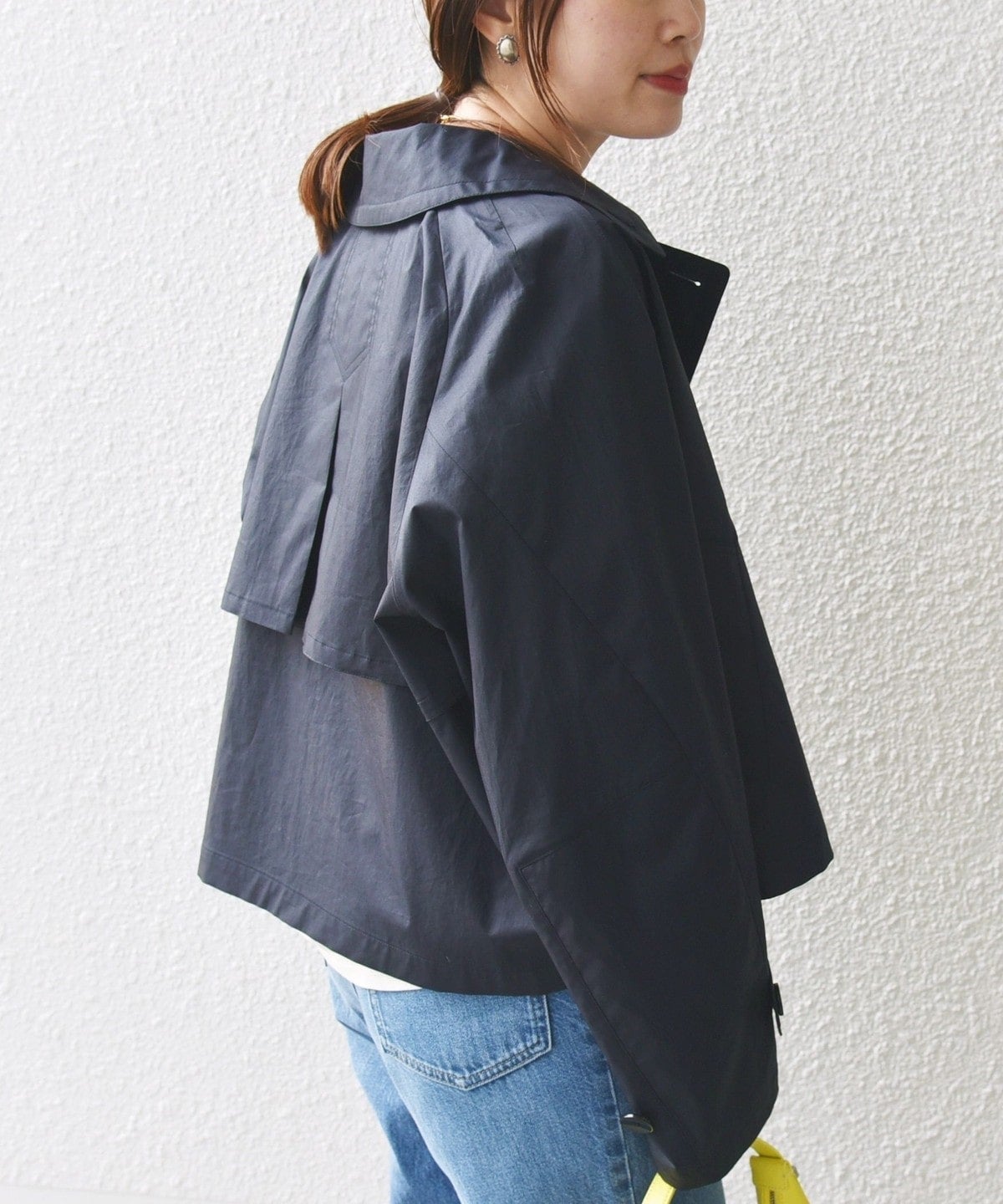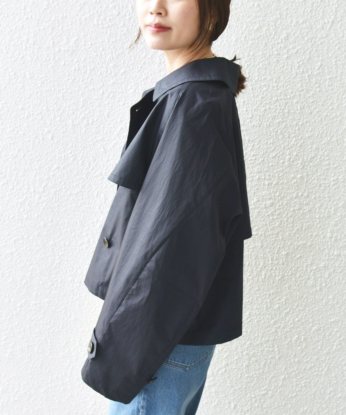 ゆったりとしたサイズ感のショートコートです。