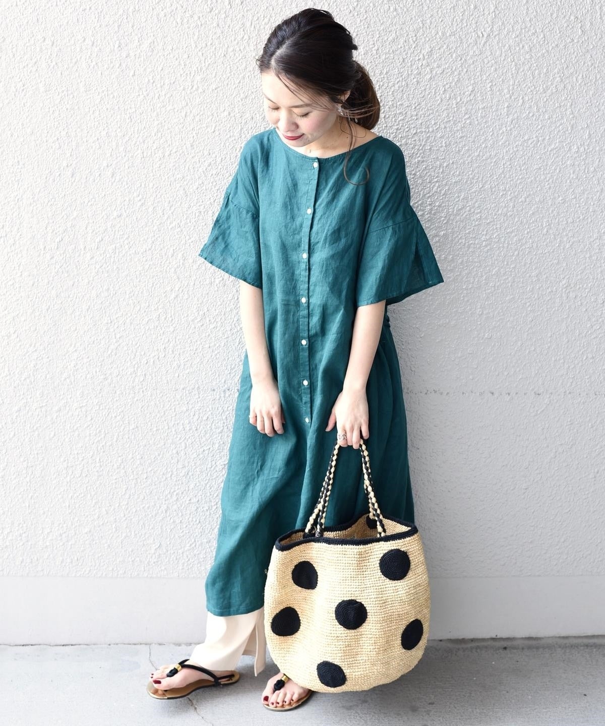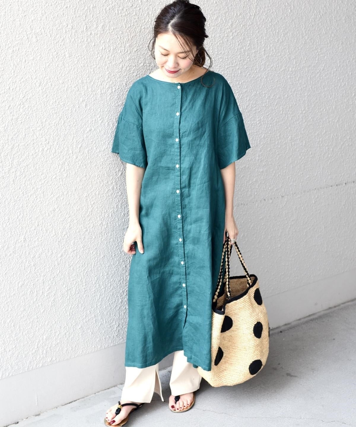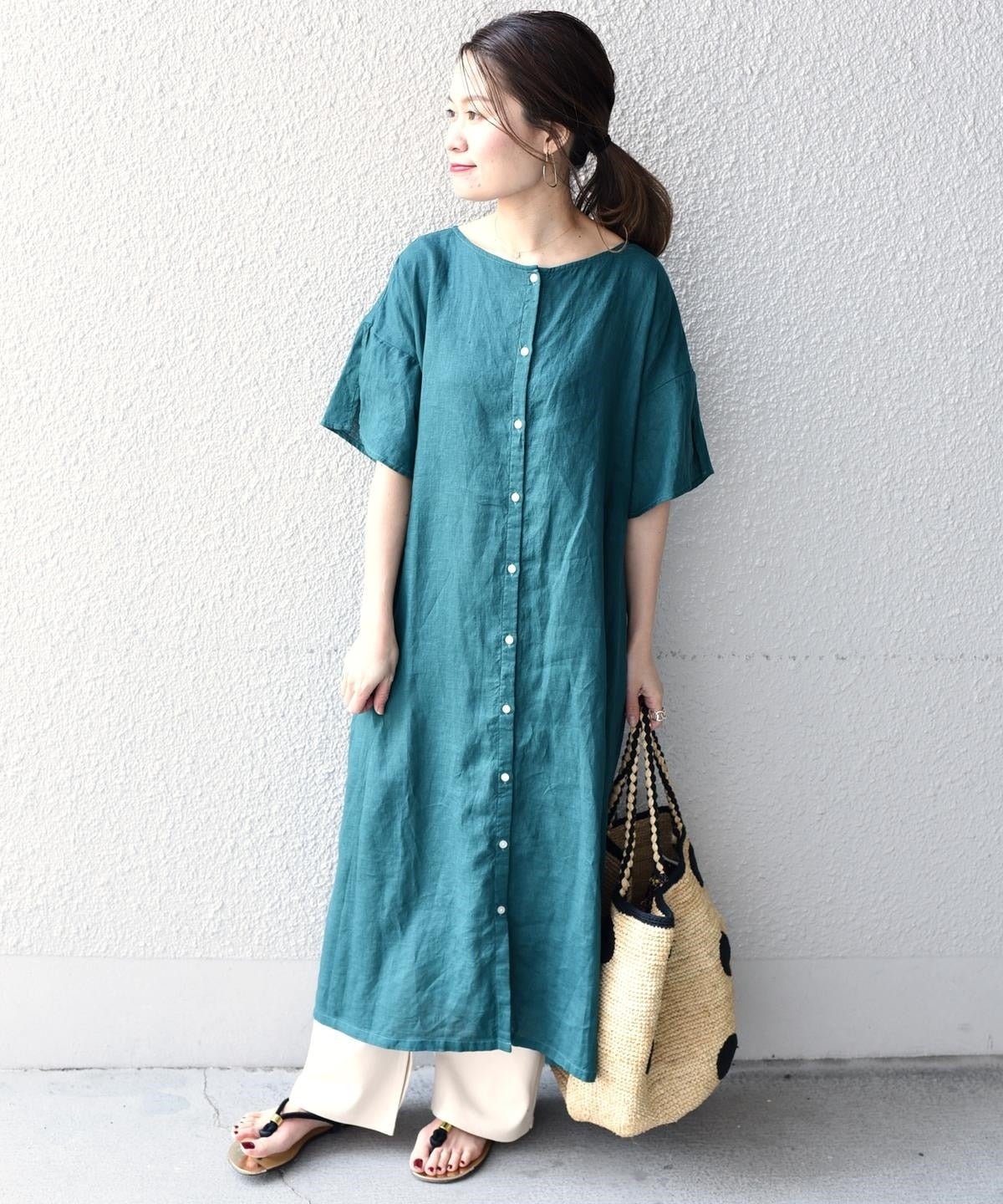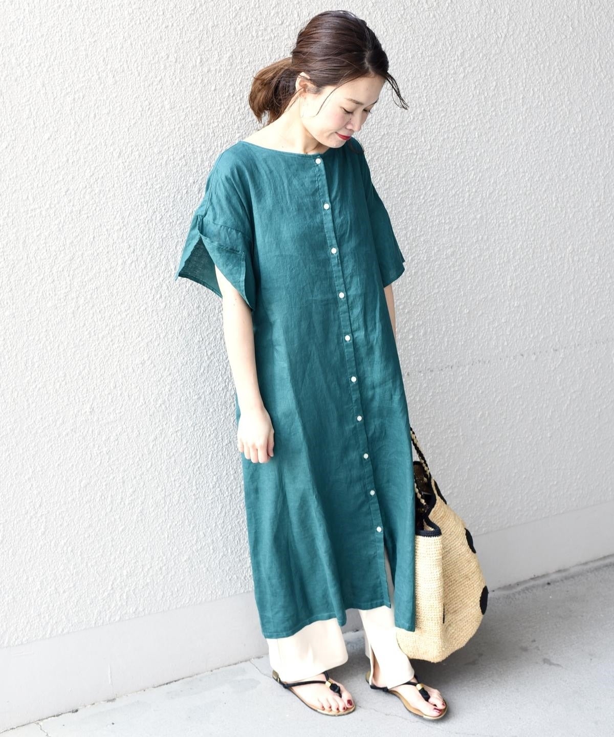 春夏に欠かせない涼しげなリネン素材のワンピース。袖にスリットが施された、動きのあるデザインが女性らしい一着です。フロントオープン型なので、ワンピースとしてはもちろん羽織りとしても使えます。また前後どちらでも使える2WAY仕様でスタイリングの幅も広がる一着。ウエストのリボンは取り外しできるので、気分によって様々な着こなし方をお楽しみいただけます。透け感を気にしないで着用できるよう、ペチコートもセットになっています。ご家庭でお手入れ可能なのも、これからの季節嬉しいポイントです♪