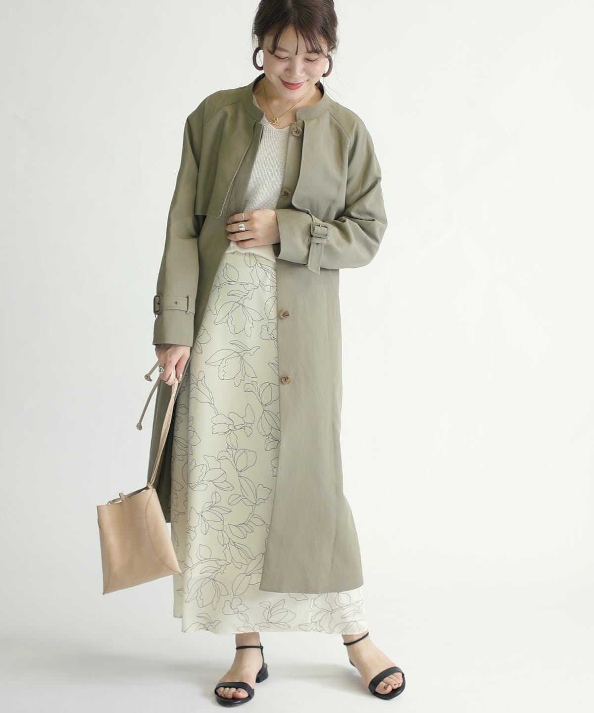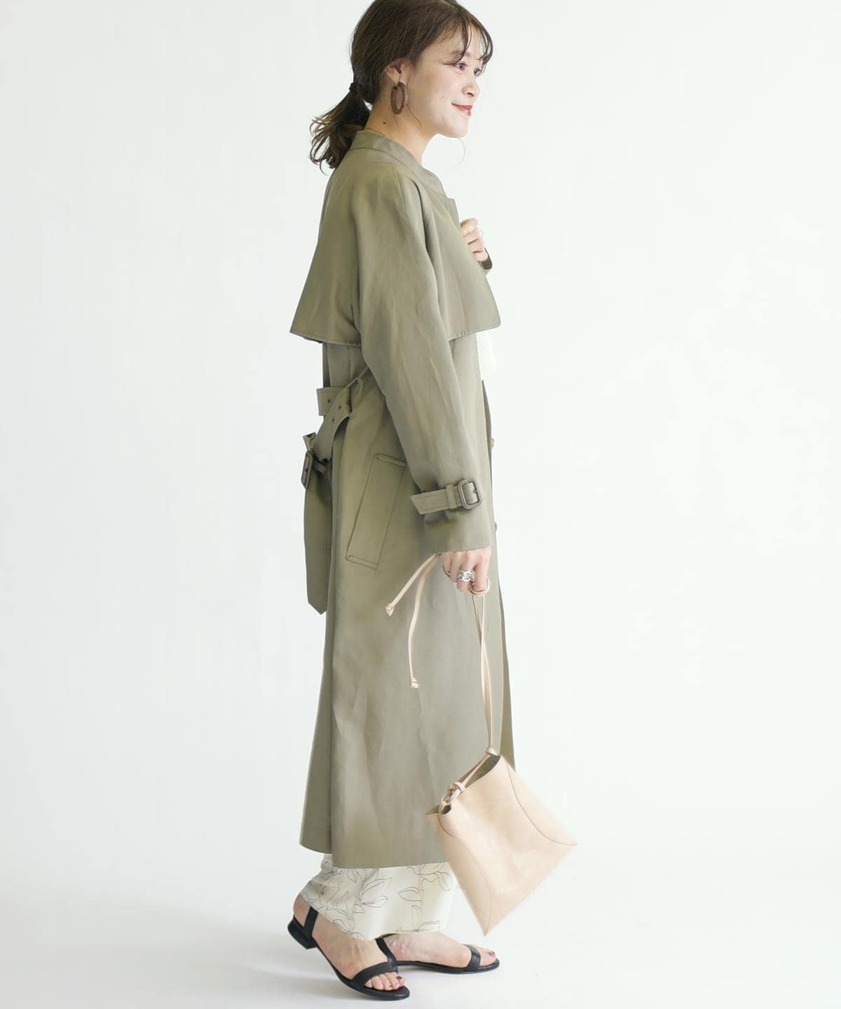 トレンチのディティールを最小限に無くし、かっちりしすぎないデザインに仕上げた1枚。