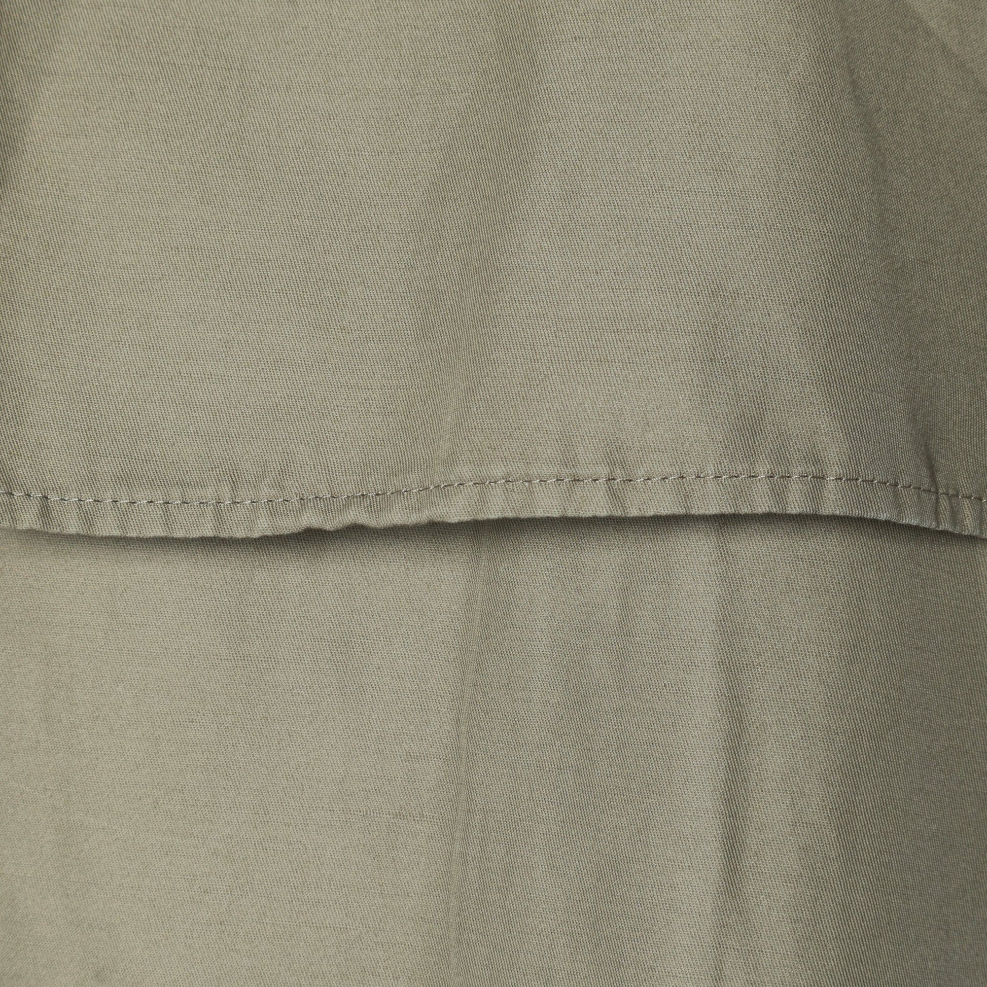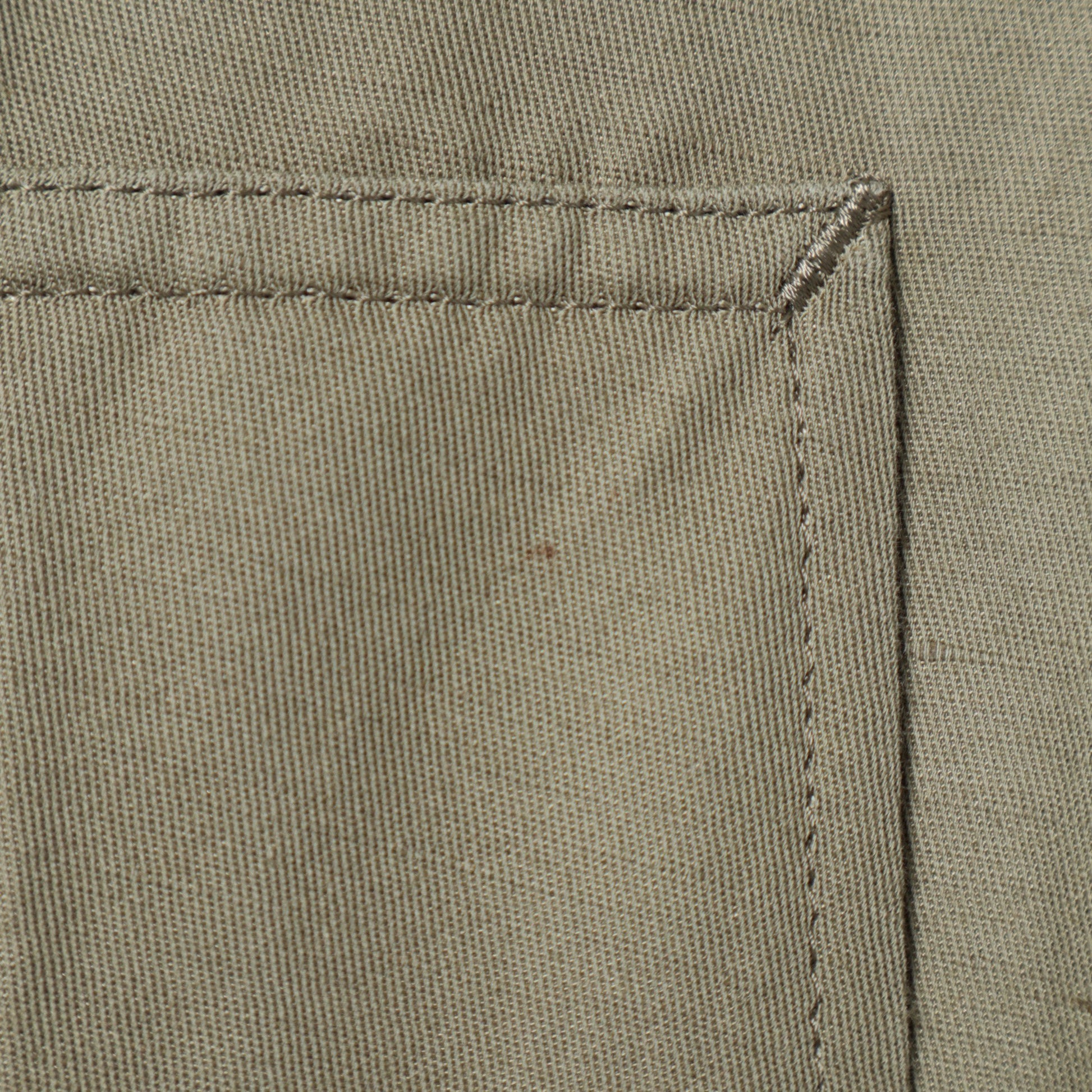 高密度の2/2ギャバ。綿強撚とリネンの組み合わせでシャリ味と麻の清涼感があり、綿強撚のドレープ感と麻の張りの適度な素材にタンブラー加工をいれ、より落ち感と張りを強調して、カジュアル感を出しています。