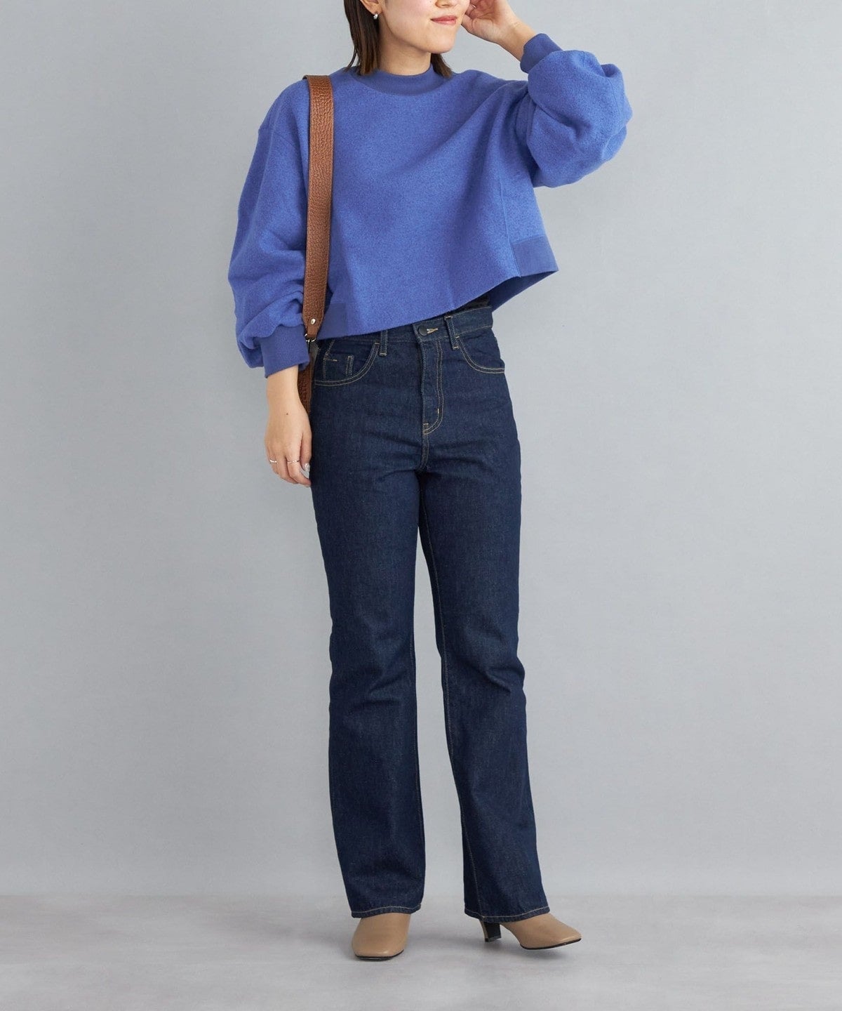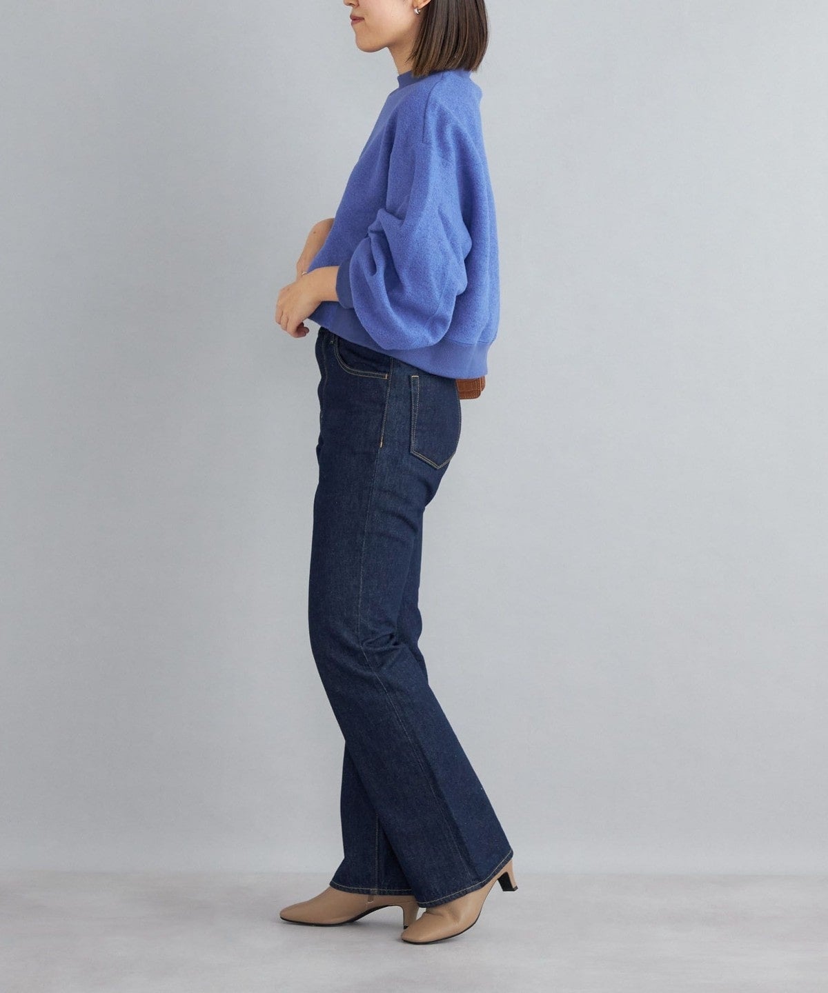 ・短めの着丈なので、インナーにシャツをあわせたりハイネックカットソーのインナーを合わせるなど、レイヤードスタイルや色・素材の組み合わせを楽しめます。
