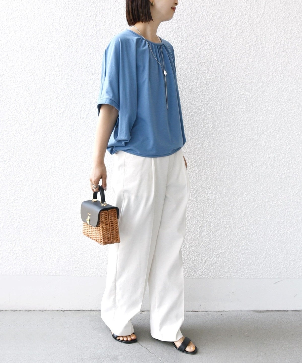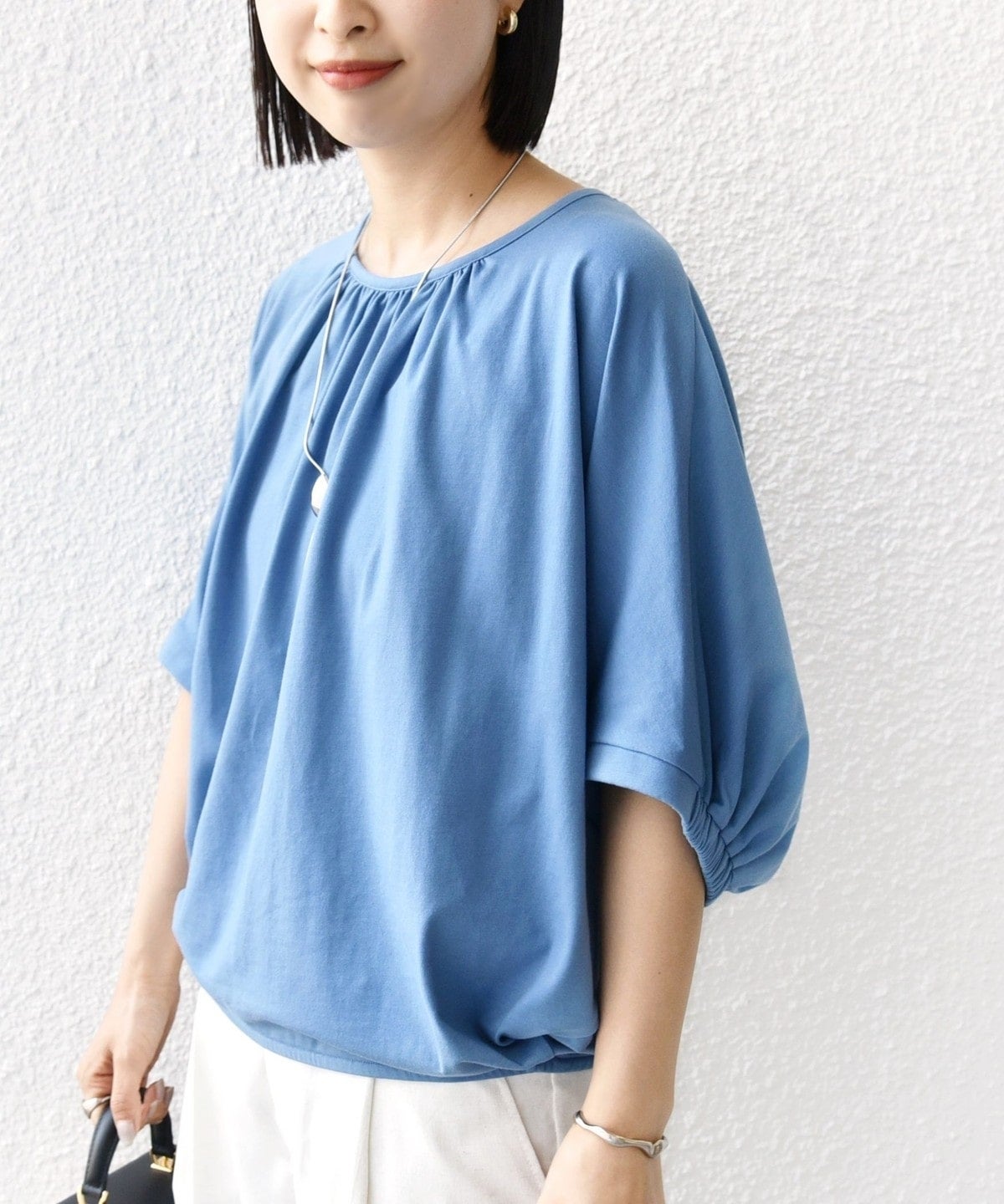 袖丈も5分袖ほどあり、袖口もゆとりがあるので体型を選ばず幅広い方におすすめの形です。