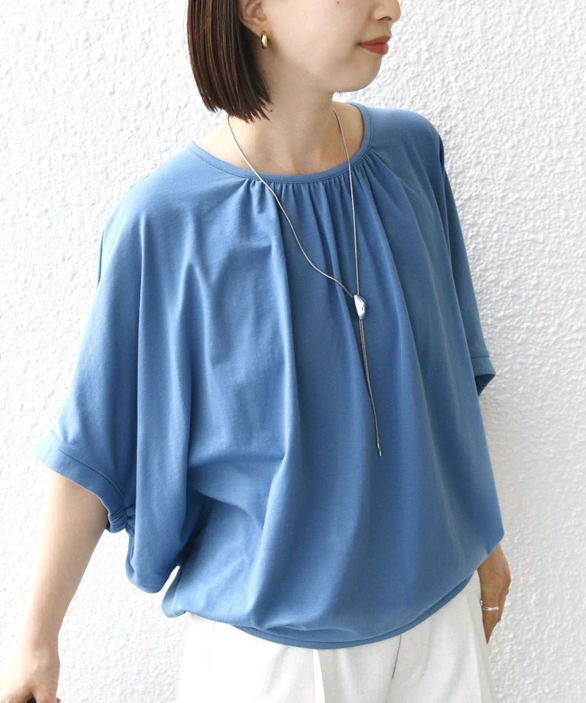 〈洗濯機可能〉ドルマン ギャザー ブラウス TEE