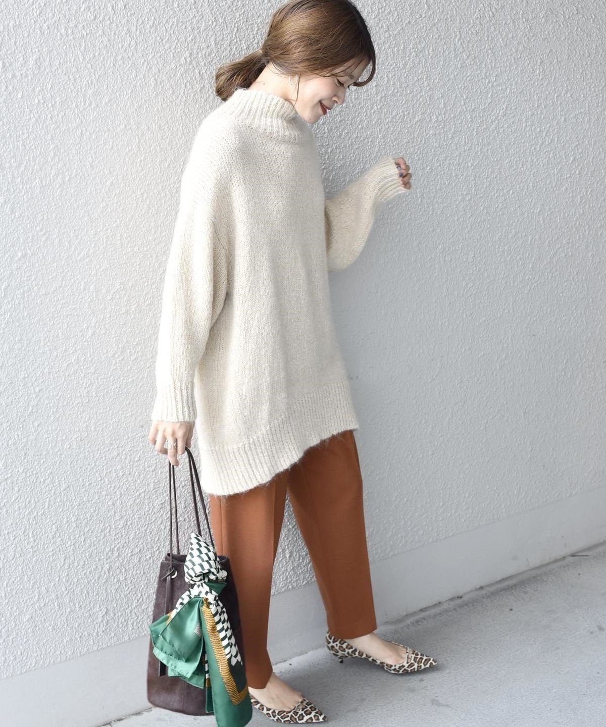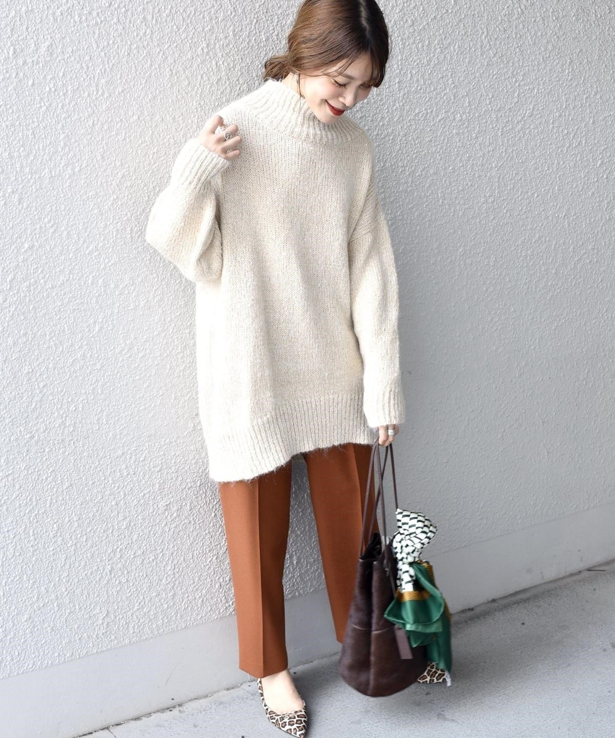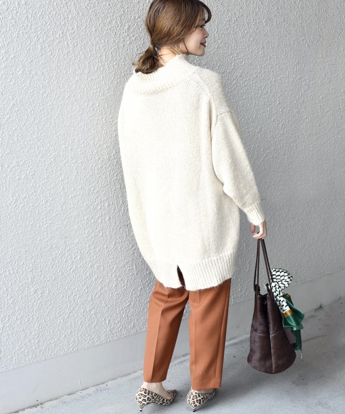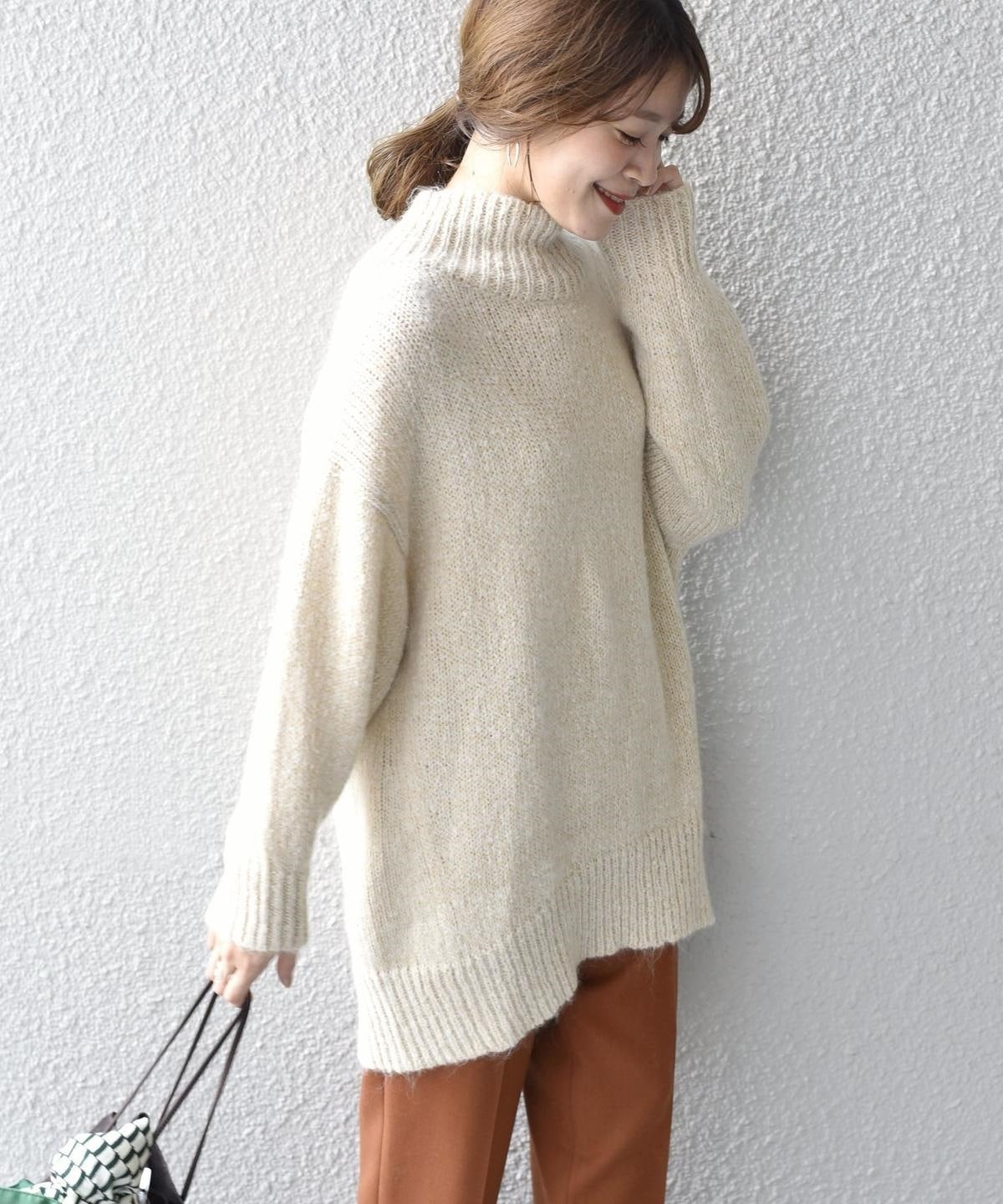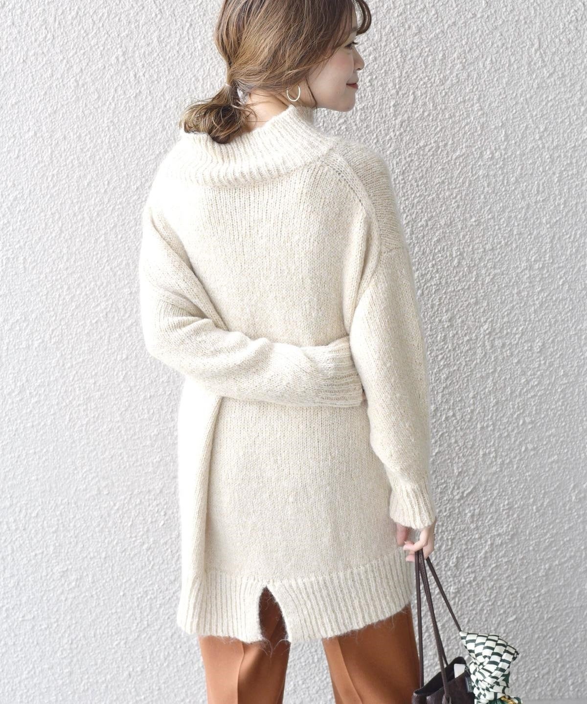 トレンドのオーバーサイズニットで丈長のデザインですが、他にはないこの素材ならではの軽量感。