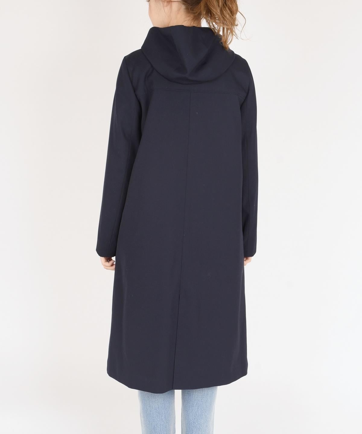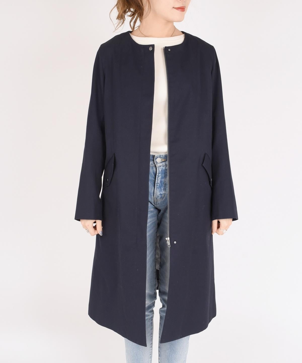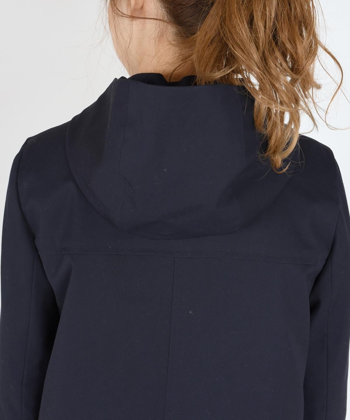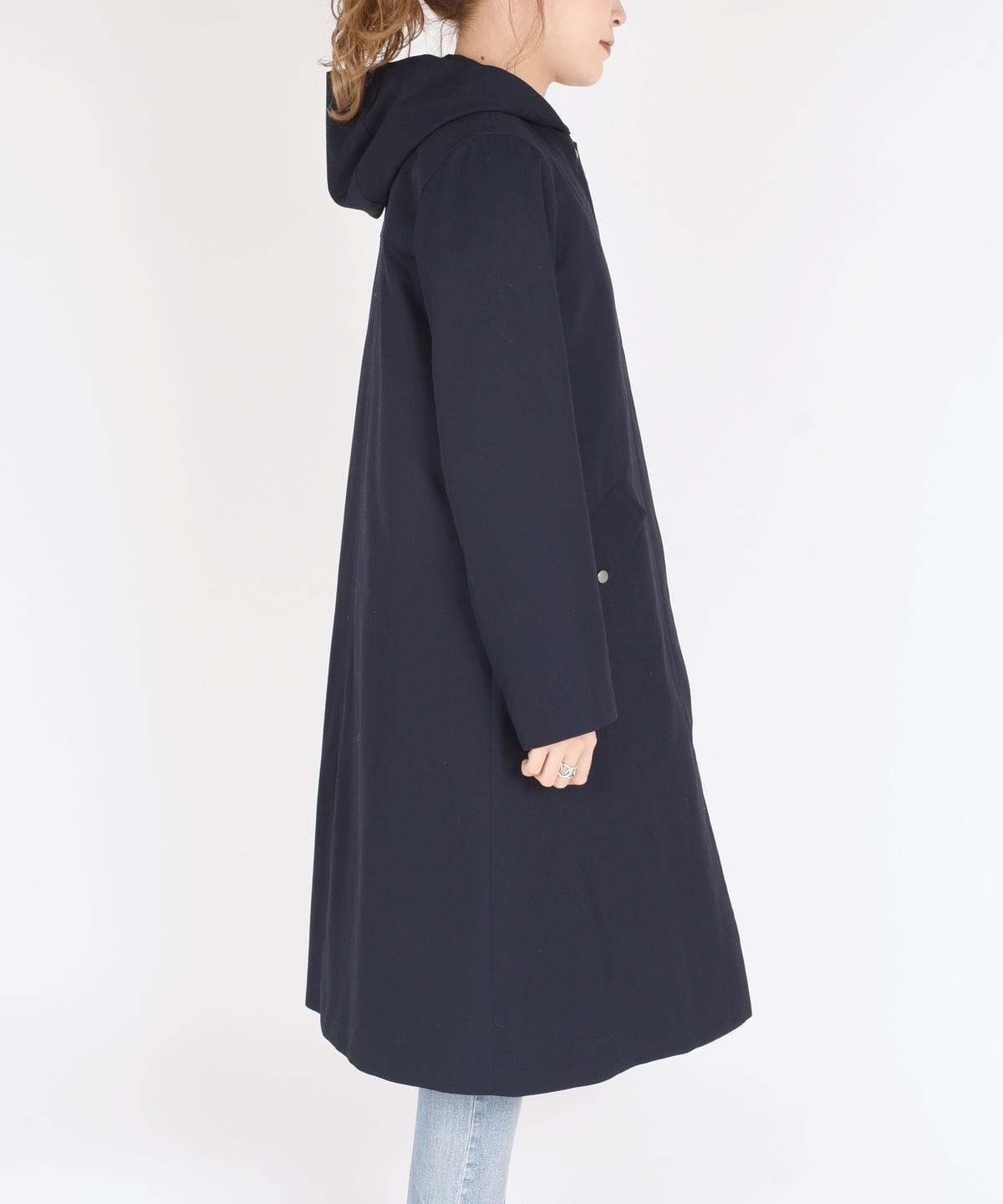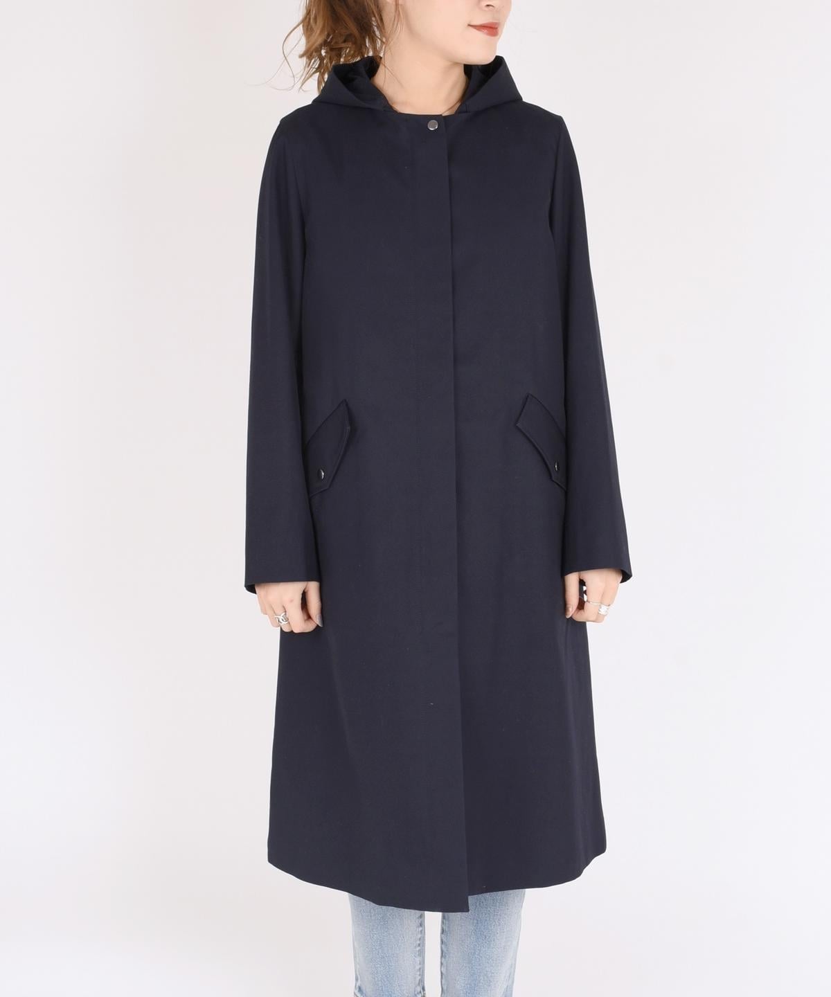 フードは取り外しが可能で、ノーカラーコートにもなる2WAYタイプ。