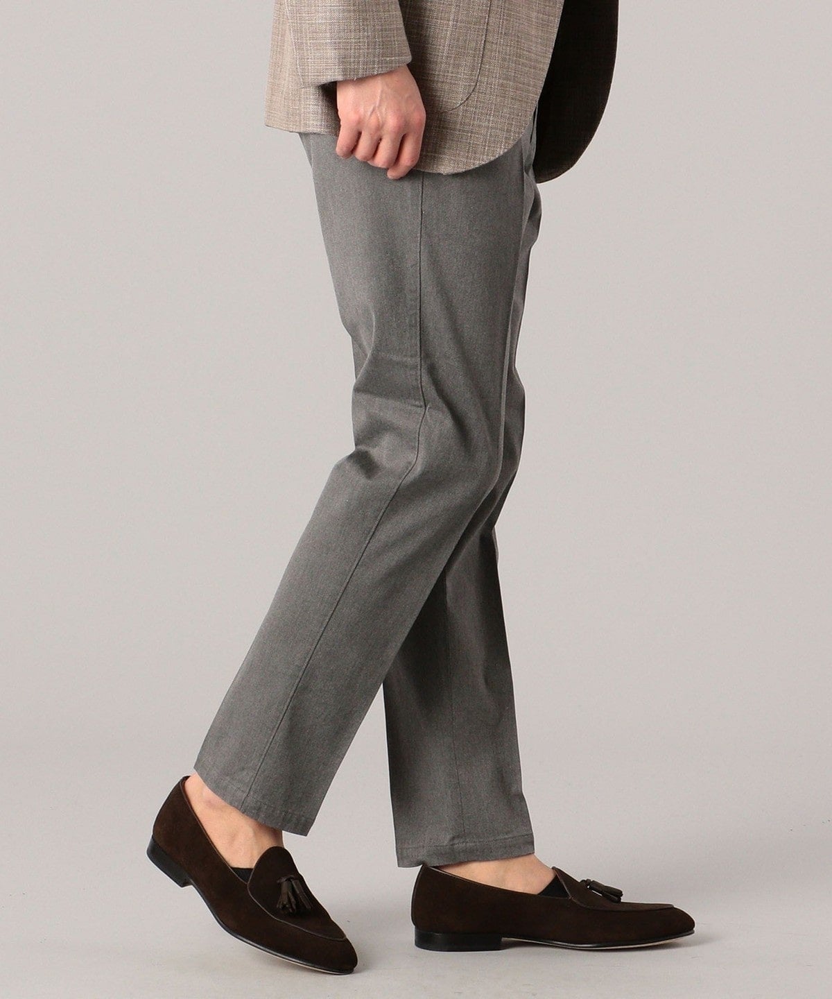 シルエットはすっきりとしたスラックス型のノープリーツパンツにしており、ビジネスでのジャケパンスタイルから、カジュアルなコーディネートまで幅広く対応可能なアイテム。