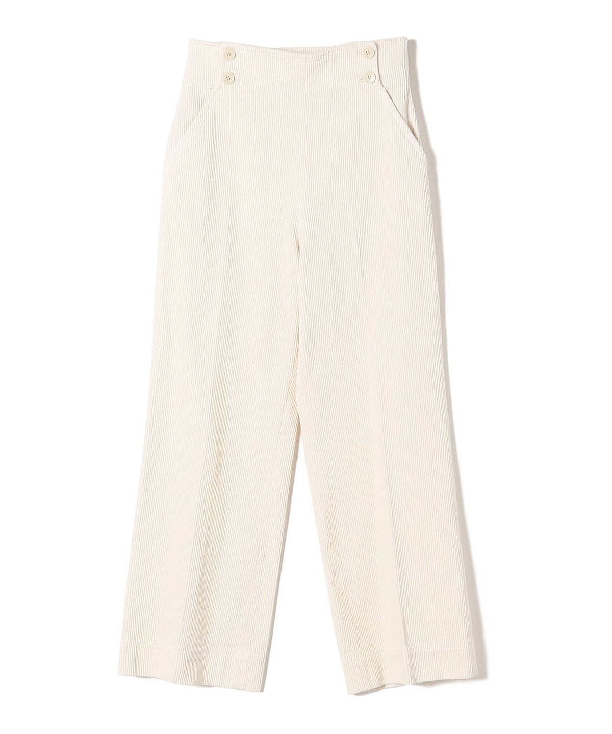 両サイドのポケット上端のボタンがポイントになったコーデュロイパンツ。