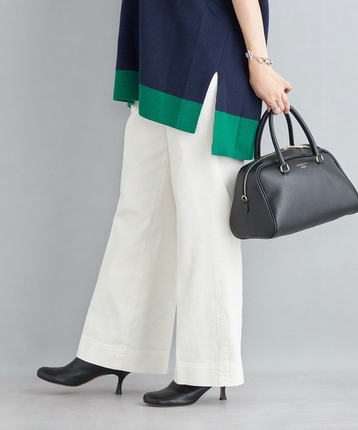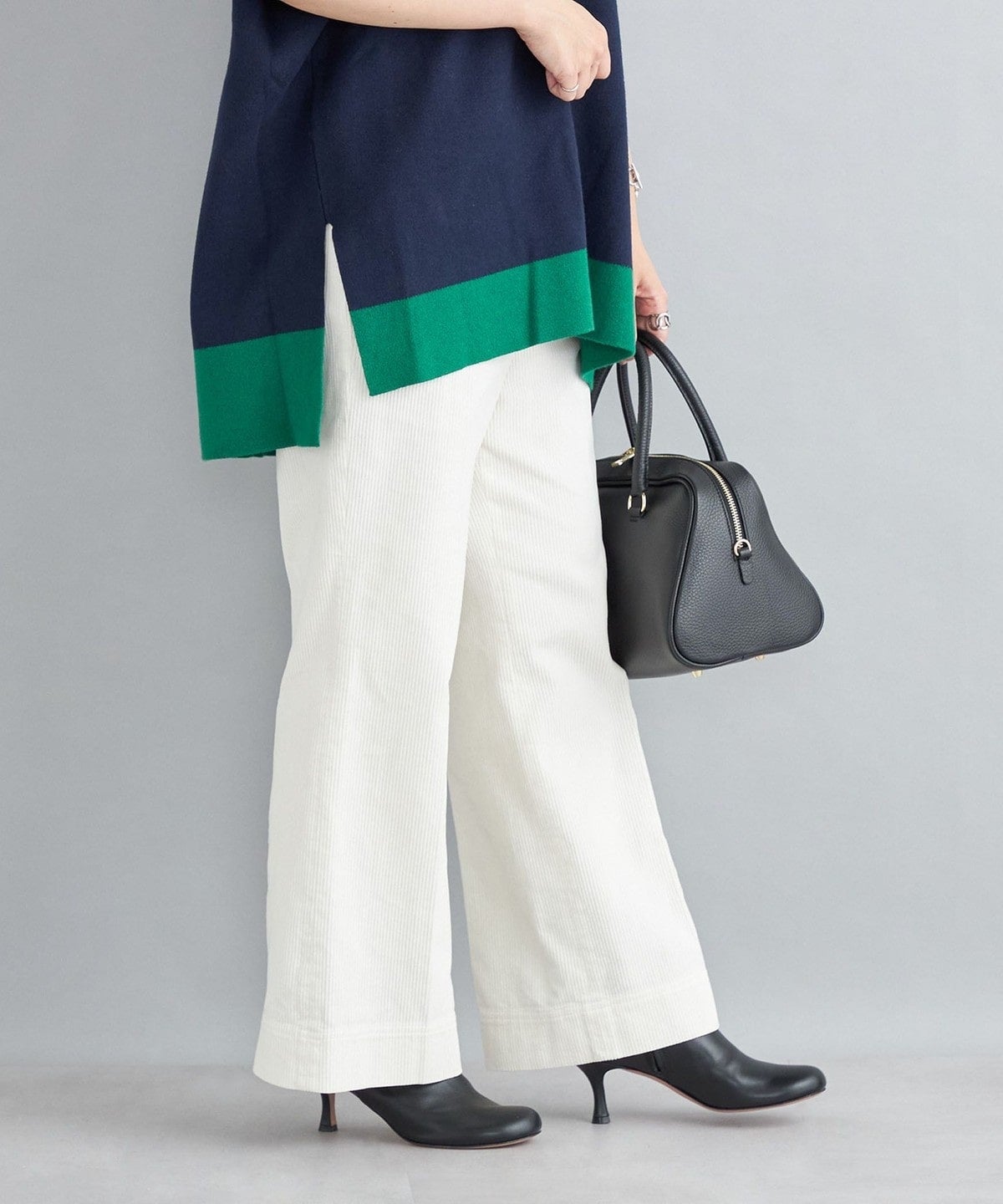 トップスインした時に綺麗にまとまるので、スタリングアップするパンツです。