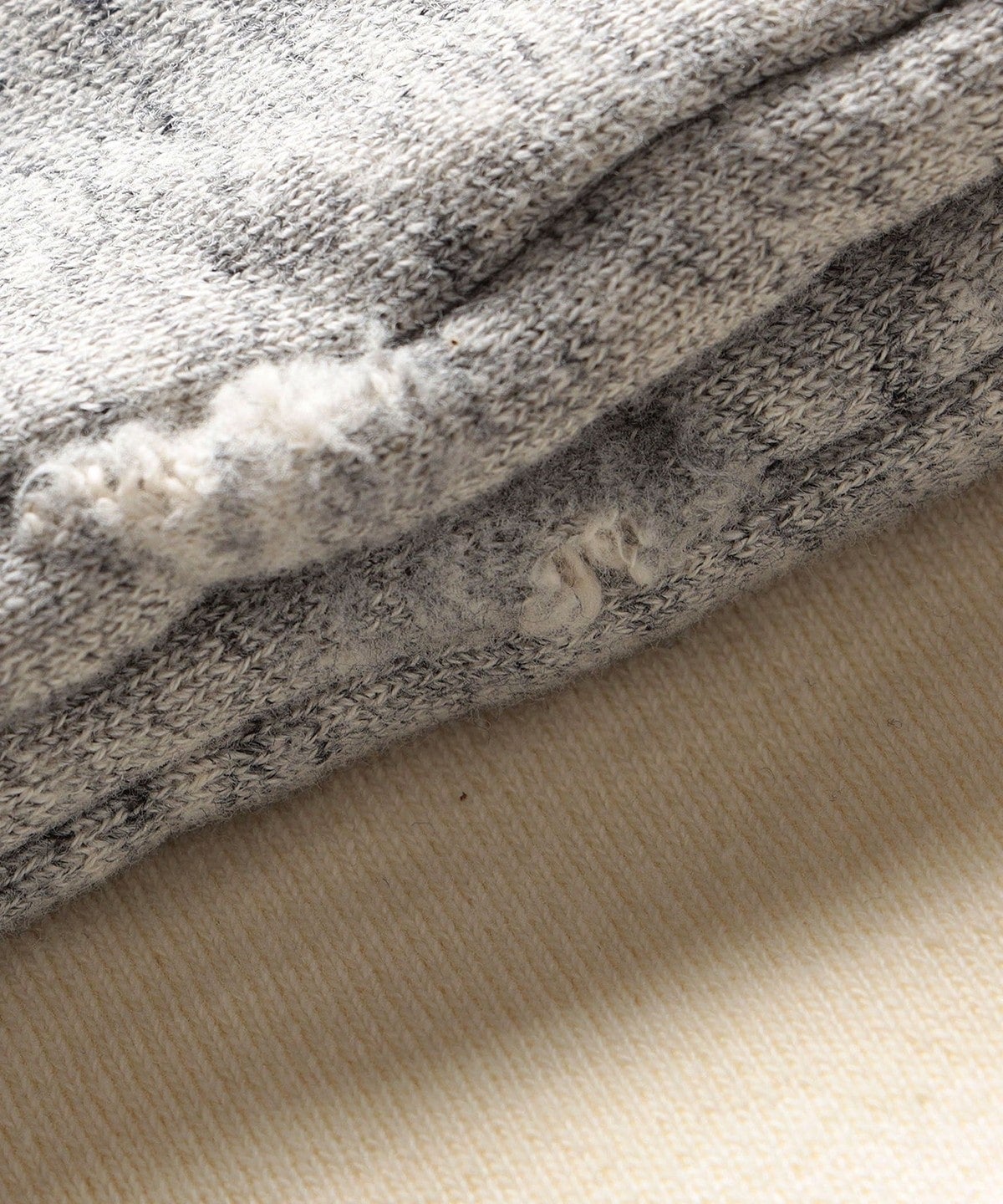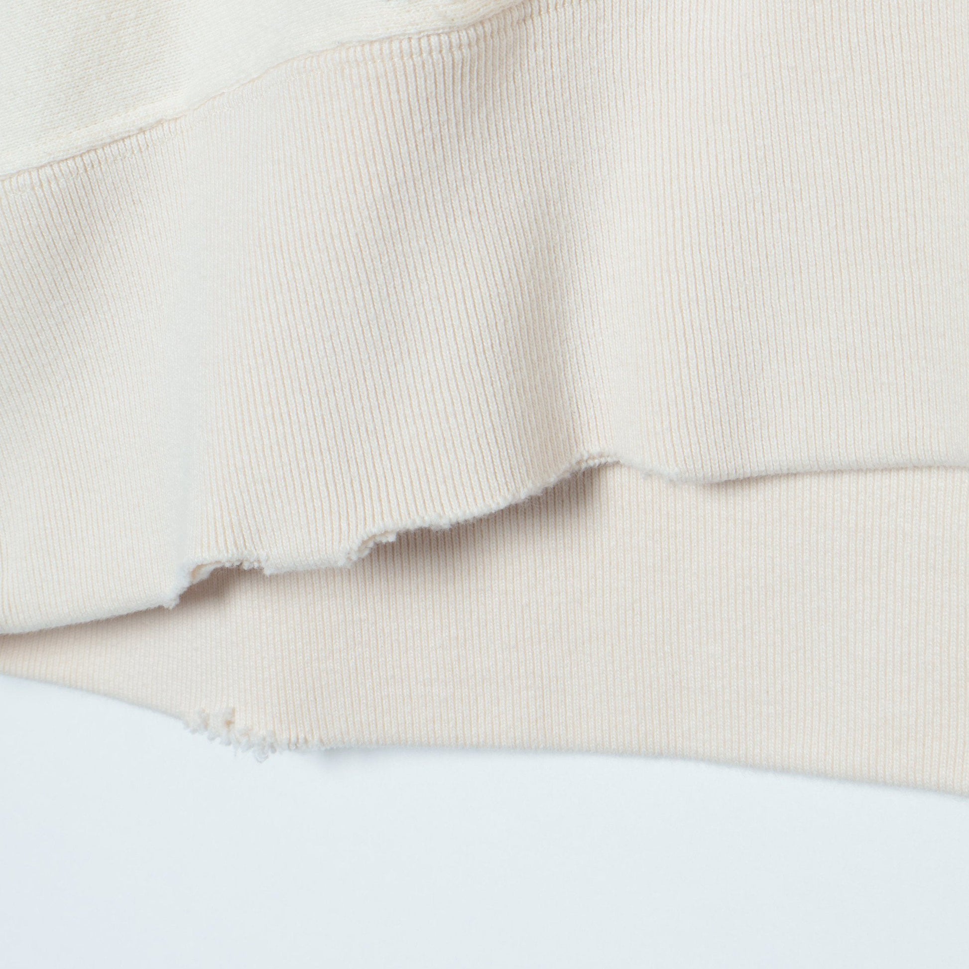 洗いや袖口や裾、フードにダメージ加工を入れ、ヴィンテージライクに仕上げた1枚。