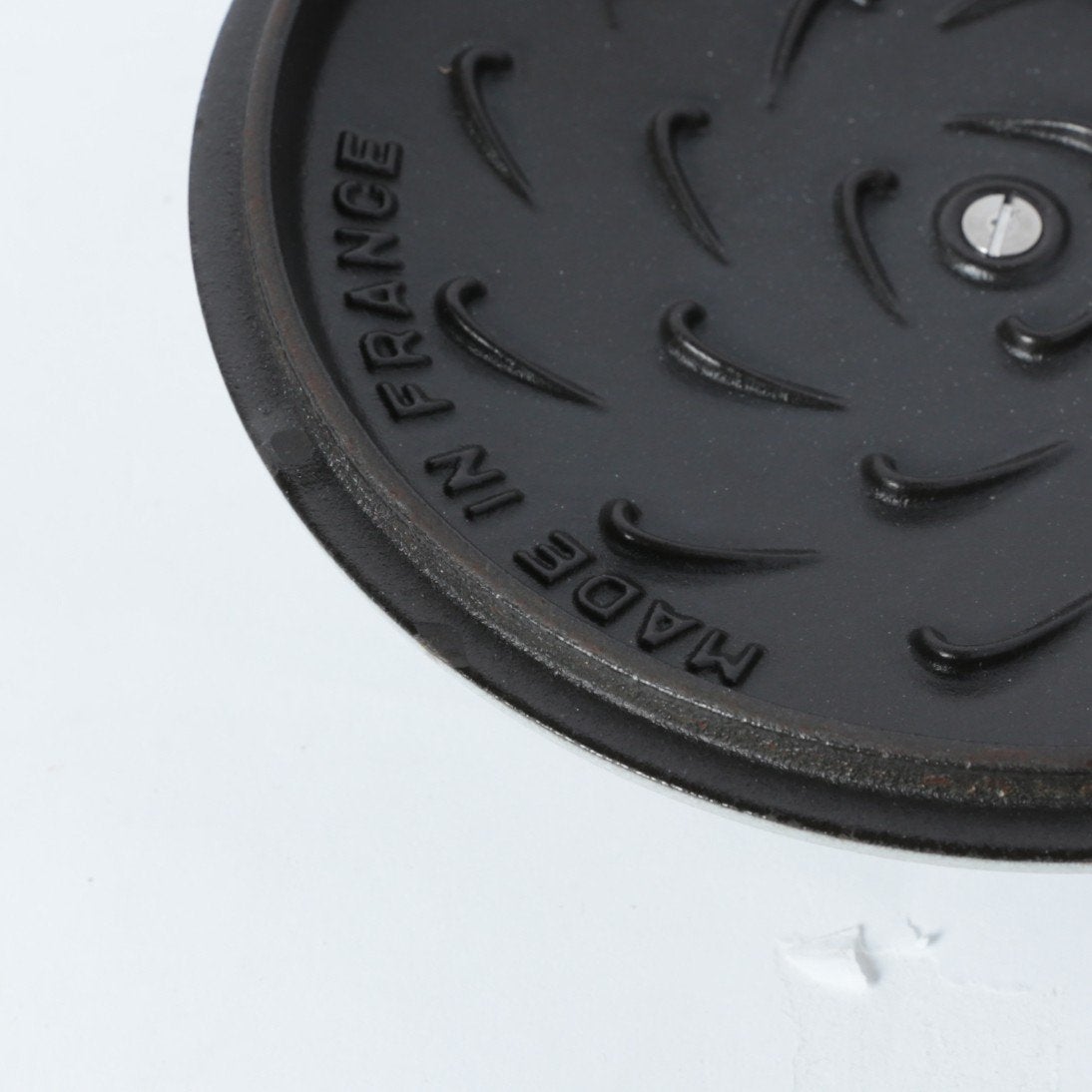 黒マットエマイユ加工:内部はストウブ独自のザラザラ加工。細かな凹凸によって表面積が増えるため油なじみがよく、食材の接点が少なくなり焦げ付きにくくなります。 更に熱伝導・保温性が高くテーブルにそのまま出しても温かいまま料理を楽しめます。