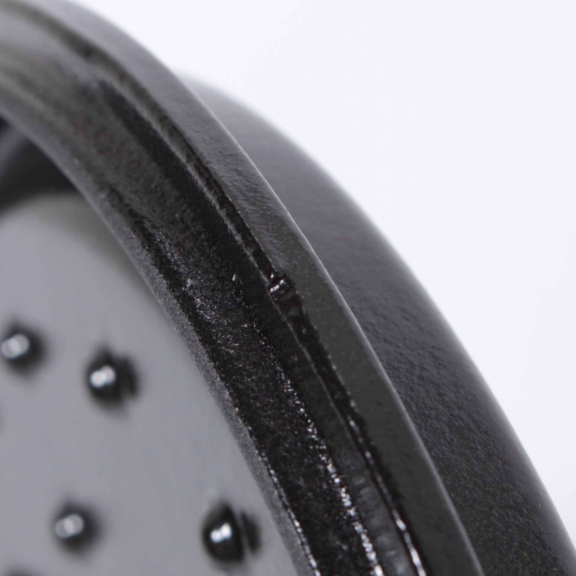黒マットエマイユ加工:内部はストウブ独自のザラザラ加工。細かな凹凸によって表面積が増えるため油なじみがよく、食材の接点が少なくなり焦げ付きにくくなります。