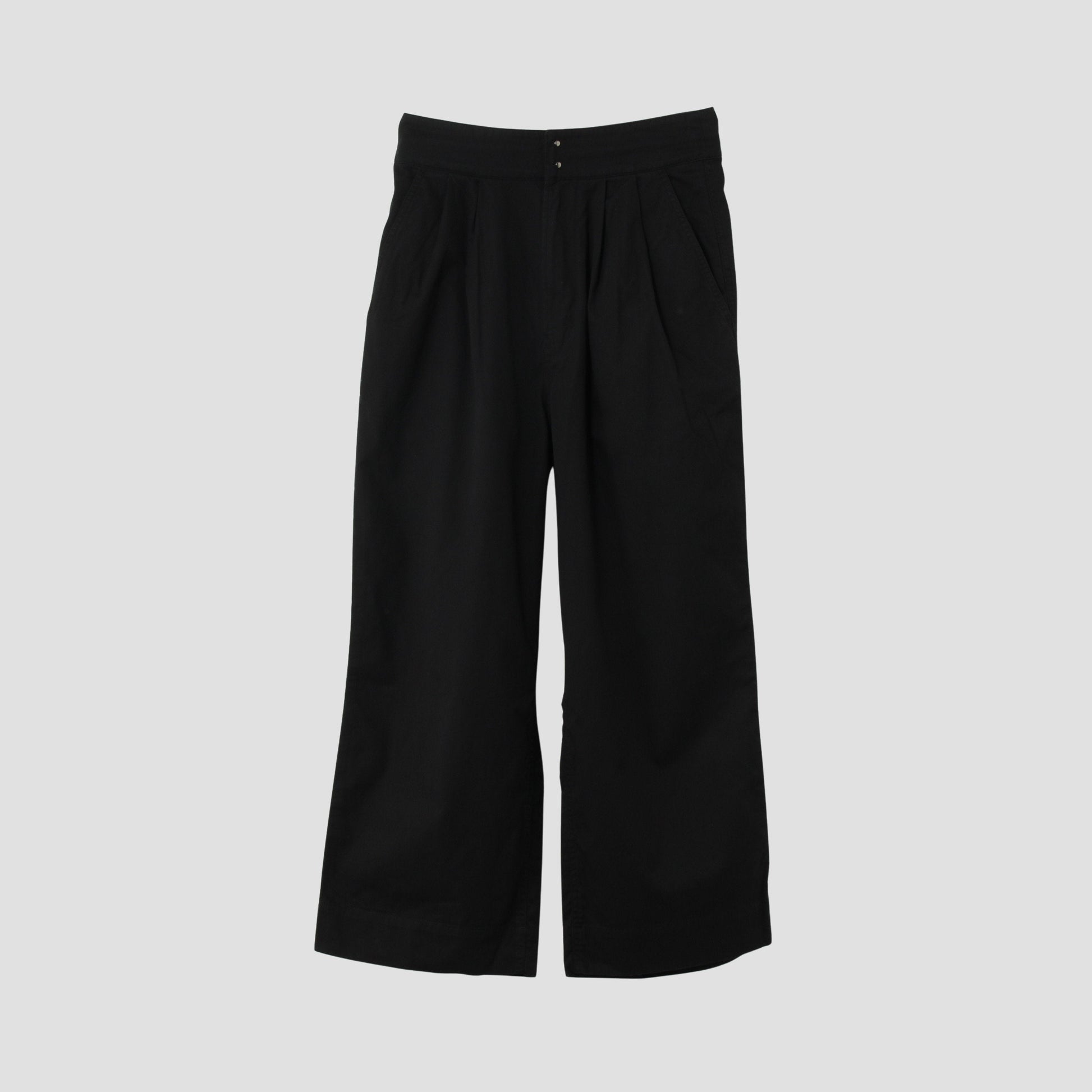 高密度に織り上げたツイル素材を使用したトラウザーズ。ウエストにタックが2本入ったワイドなシルエット。