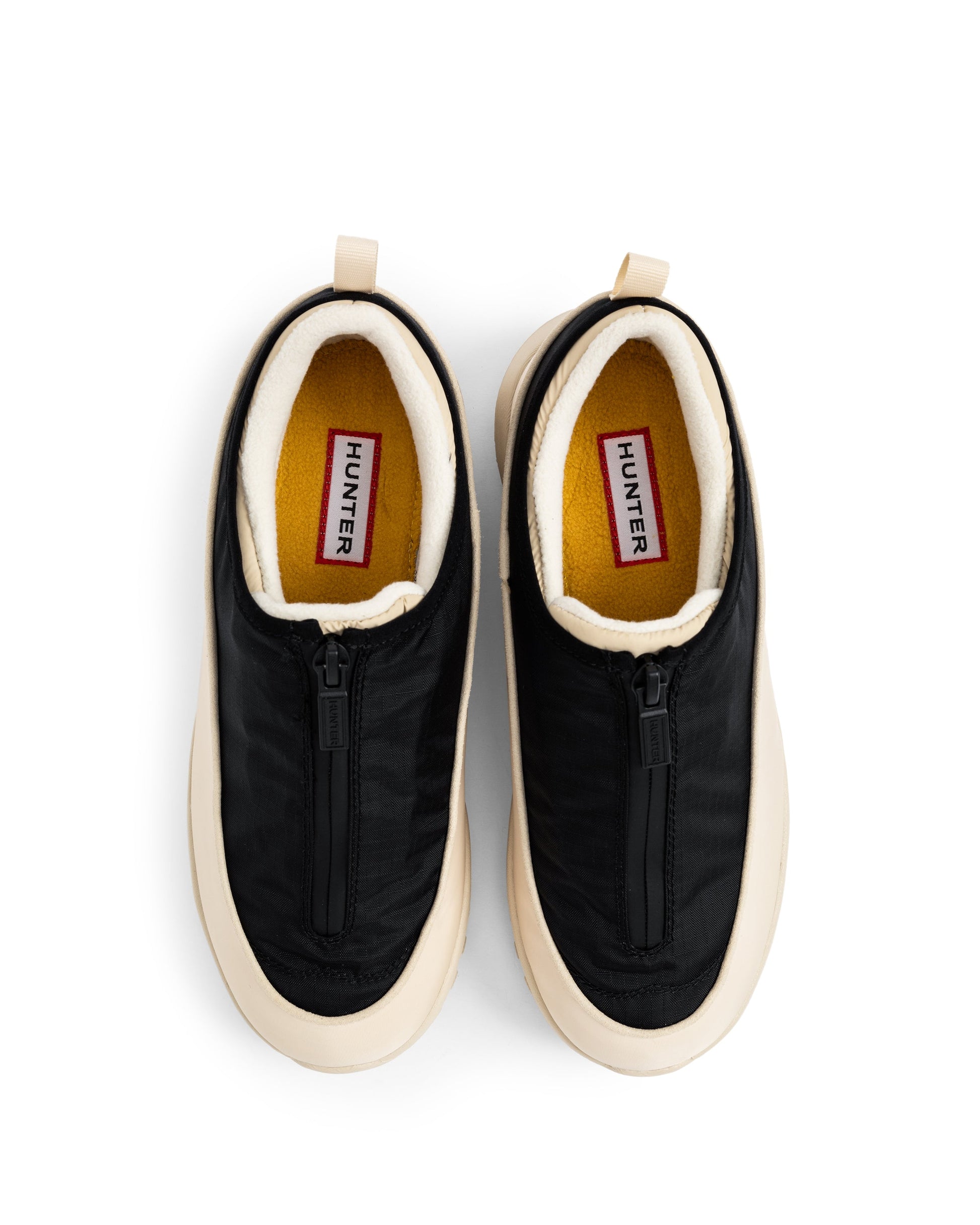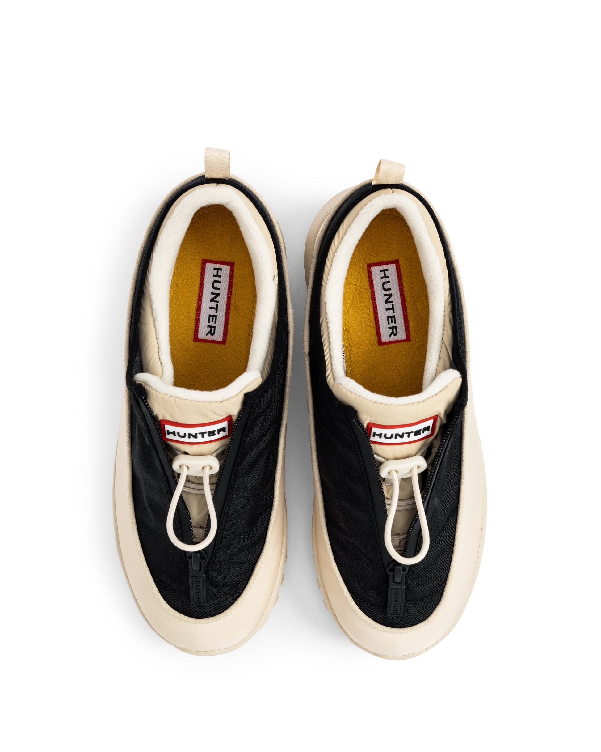 この冬、ハンターからユニセックス仕様の新しいスニーカーが登場しました。フロントジップ デザインが印象的なトラベルフロートレーナーは、耐水性メンブレンと、止水ジップを採用し、高い耐水性を発揮します。100%リサイクルポリエステルを使用した裏地は、柔らかく保温性に優れ、寒い冬でも暖かく快適な履き心地を提供します。このシューズは、-15℃まで対応しています。クッション性の高いラバーアウトソールの側面には、ハンターロゴがあしらわれています。