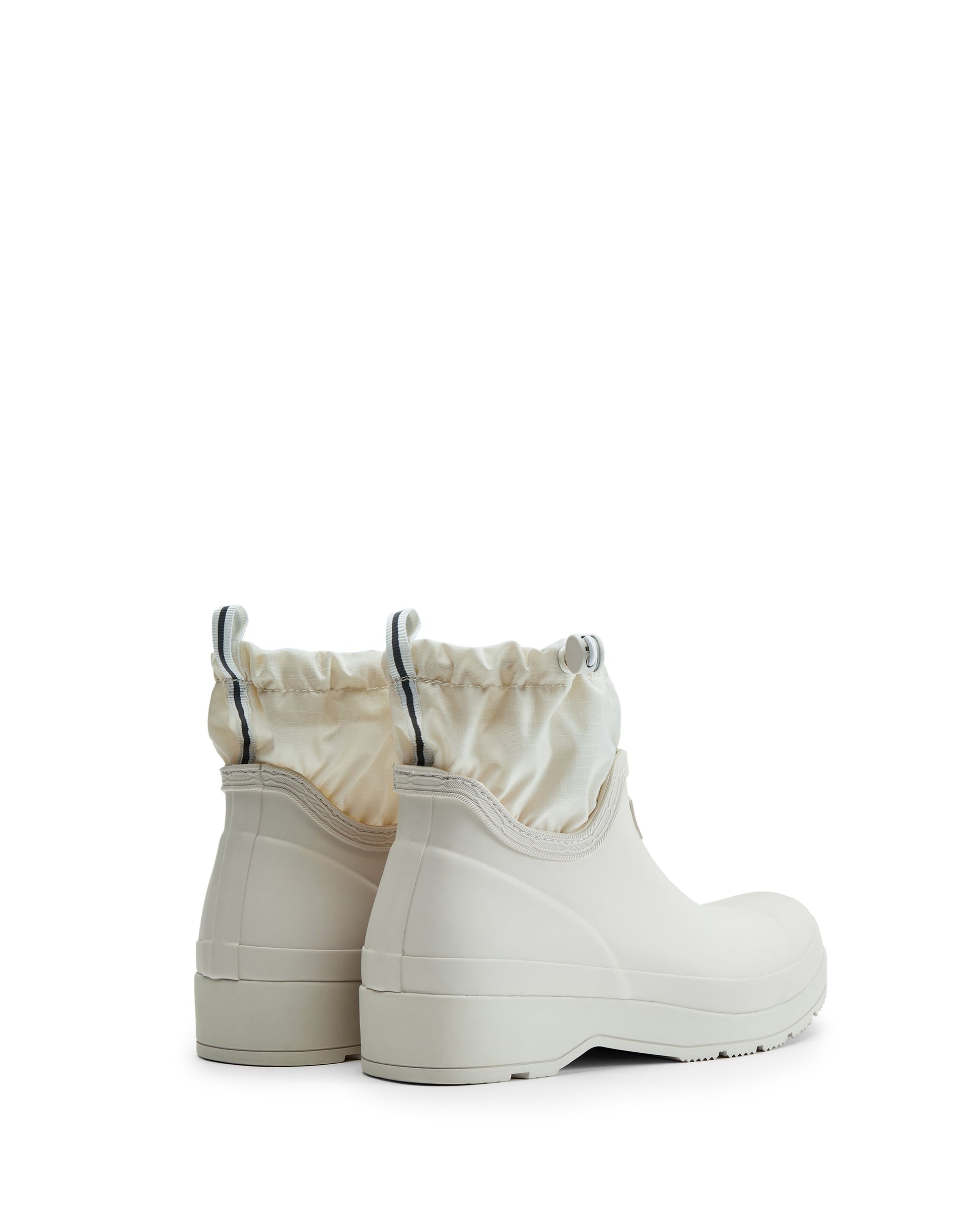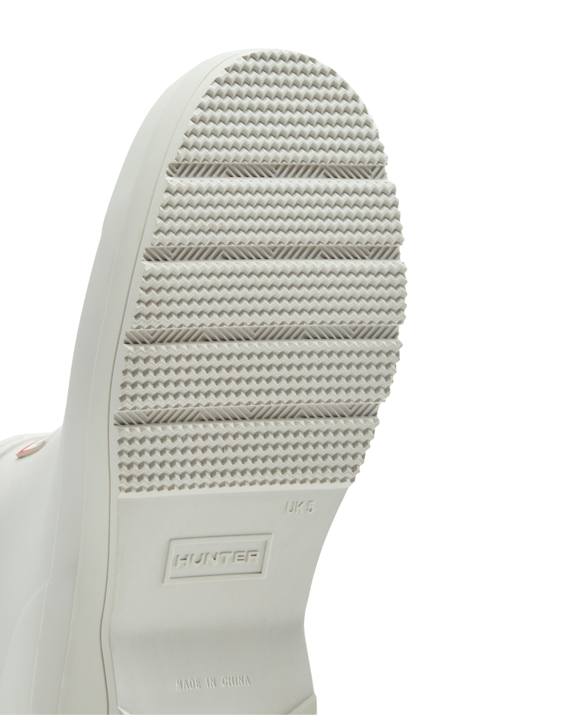 ベストセラーのプレイブーツが、春夏用にアップデートされました。リサイクルリップストップナイロンメッシュのアッパーと、巾着式のトグルクロージャーで持ち運びが簡単になり夏の旅行にぴったりのブーツです。足首にかかる丈のユニセックスなシルエットで、フラットなソールと角度のついたブロックヒールが快適な履き心地を実現。最高品質の108%防水天然ゴムを使用し、リサイクル素材の裏地を施しています。